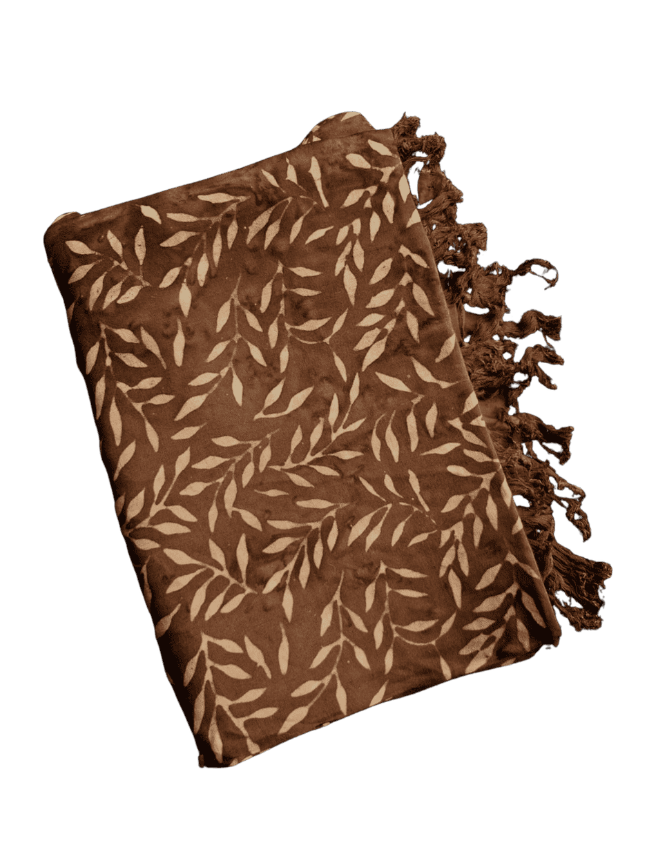 Sarong je velký šátek vyrobený z pevné látky, ozdobený na dvou stranách třásněmi. Naše sarongy jsou vyrobené v Indii a řemeslně potištěné metodou voskové batiky pomocí dřevěných, ručně vyřezávaných desek, každý kus je originál.